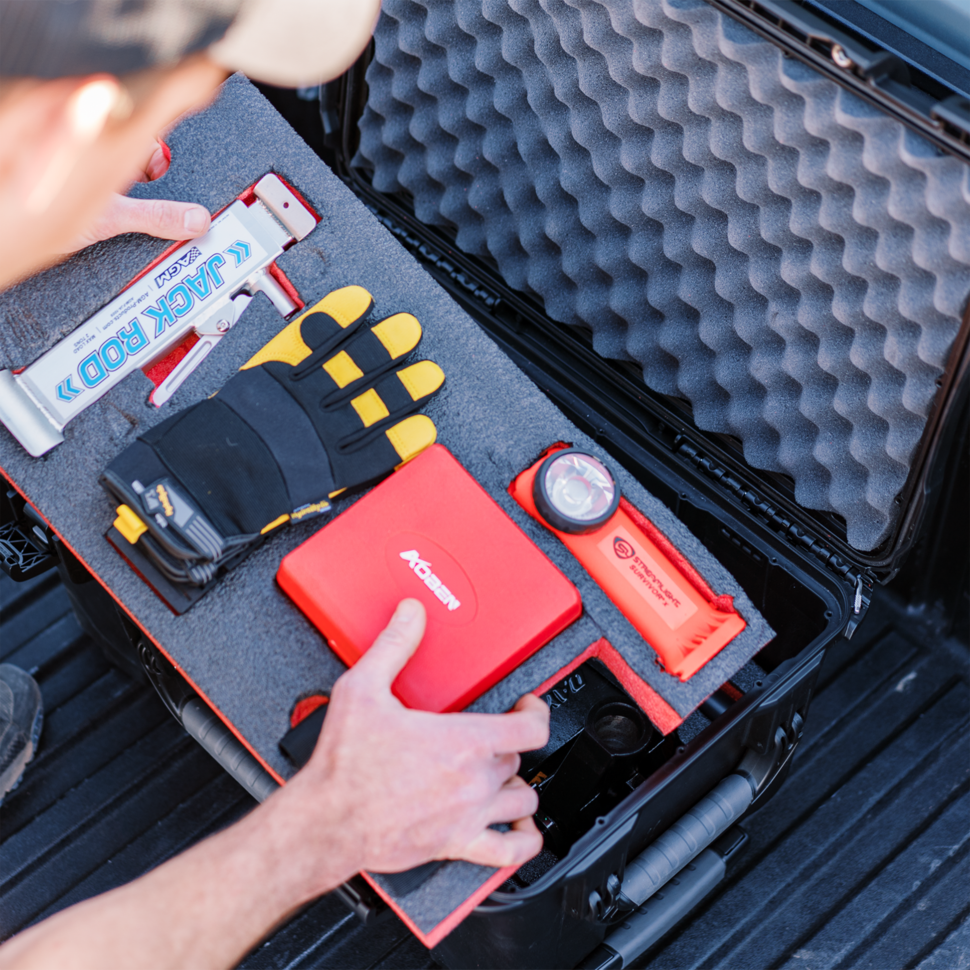 Don't settle for overlander kits that aren't up to the task. For overlanders looking for a pre-curated solution rather than a flexible overlanding storage kit, this system is a fully equipped roadside and trail recovery kit, packed in a rugged, waterproof hard case and built for quick, reliable action when things go wrong.